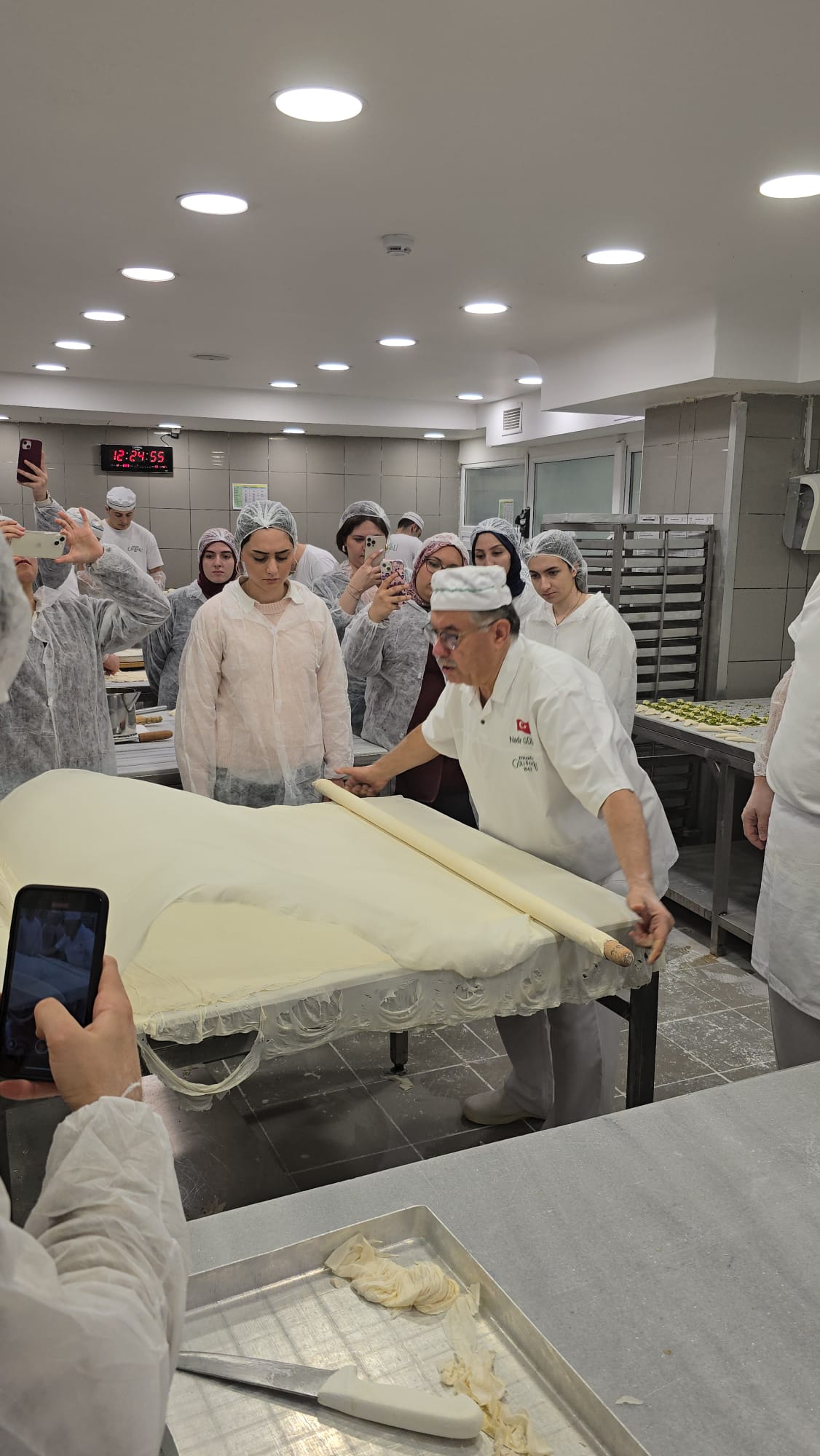 Eğitim programının sonunda öğrencilere baklava ve su böreği ikramında bulunularak teknik gezi sona erdi. Gerçekleştirilen bu ziyaretin, öğrencilerin mesleki bilgi ve farkındalıklarını artırmasının yanı sıra sektörel deneyim kazanmalarına ve mesleki motivasyonlarının güçlenmesine katkı sağladığı değerlendirilmektedir.