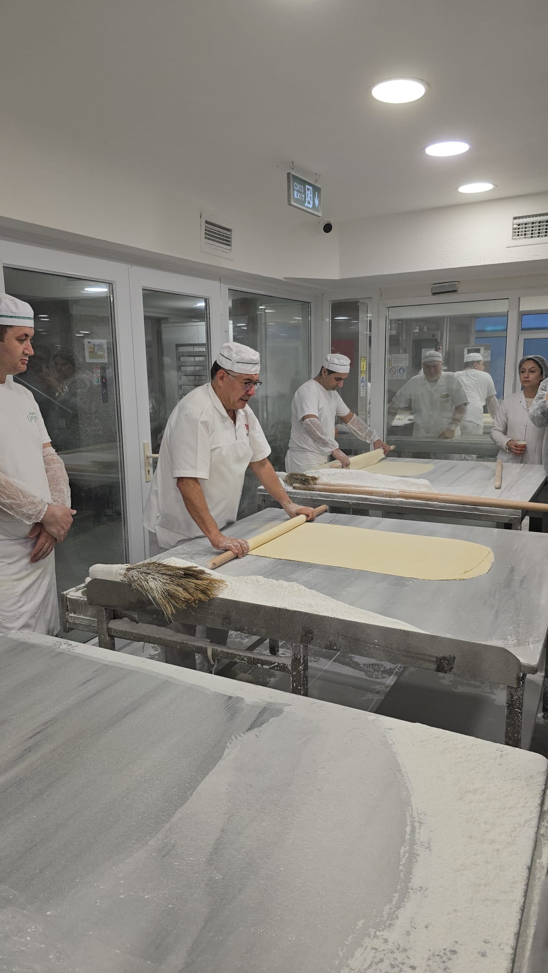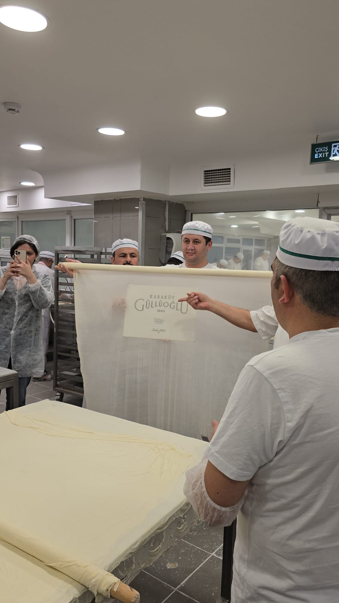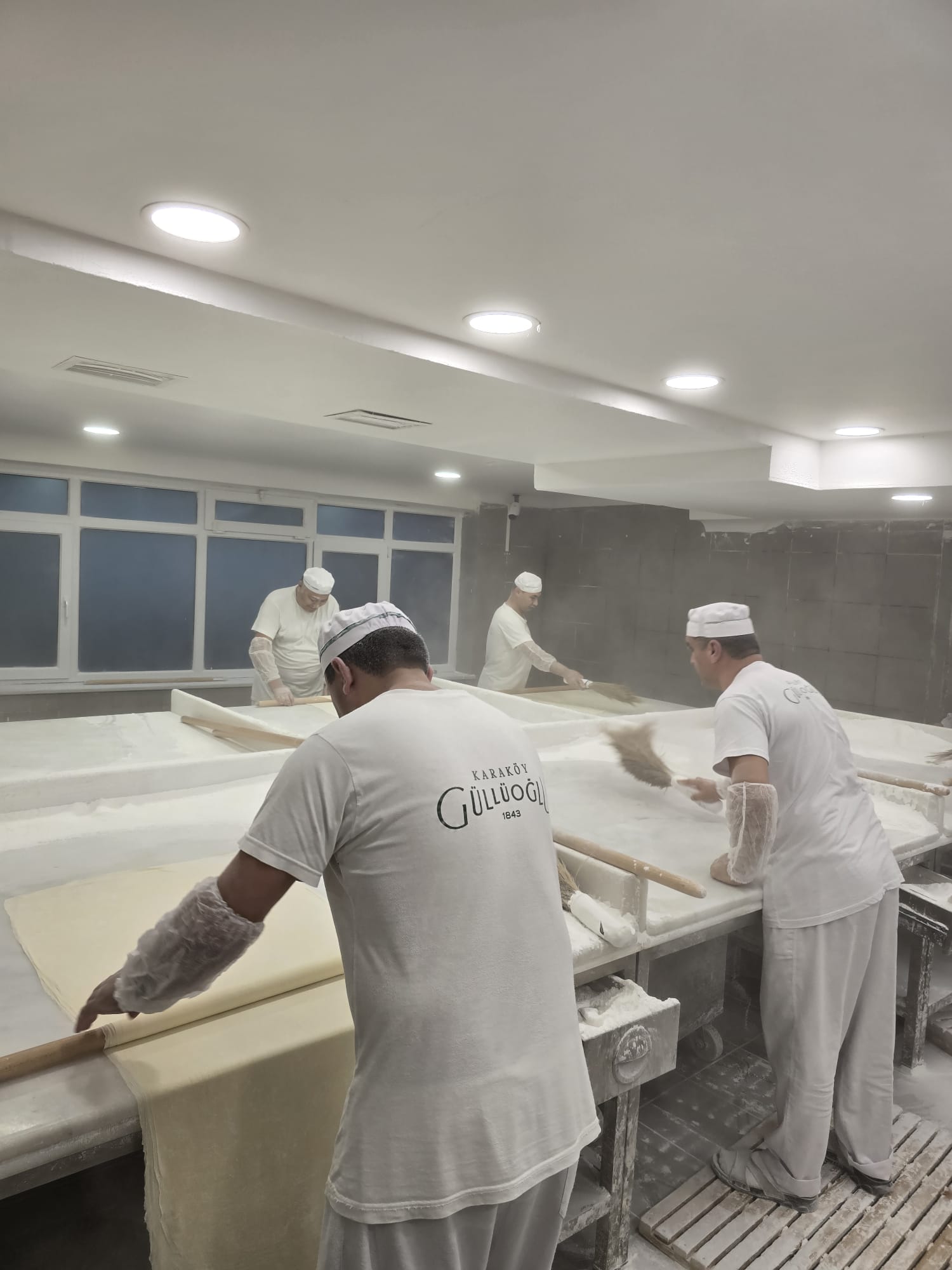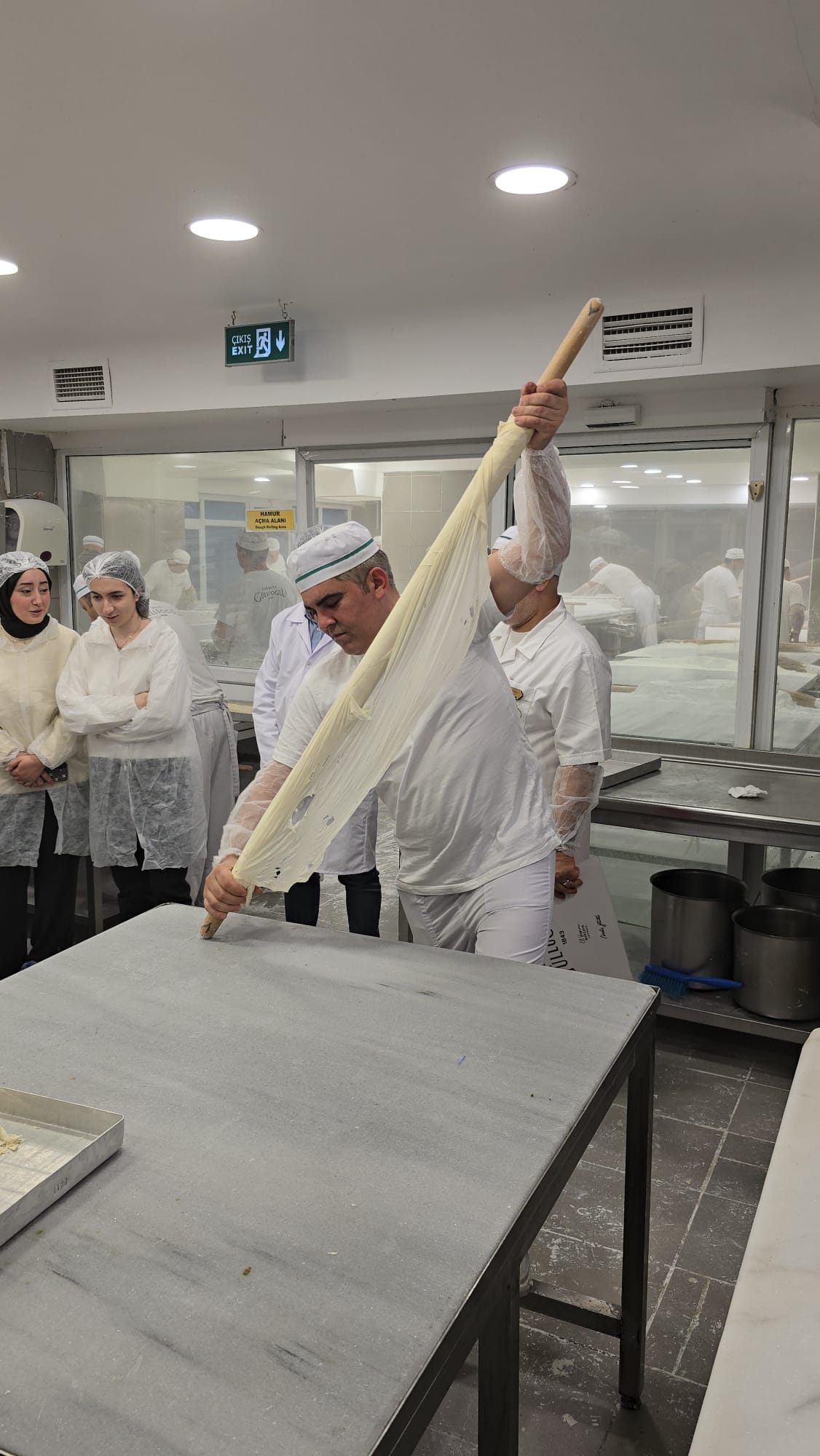 Öğr. Gör. Zeynep Kurhan’ın öncülüğünde Aşçılık ve Gastronomi Programı öğrencileriyle Türk tatlıcılık geleneğinin simge markalarından Karaköy Güllüoğlu’na teknik bir gezi gerçekleştirildi. Yüzyılı aşan bilgi birikimi ve ustalık geleneğiyle öne çıkan işletmede, baklavanın üretim süreci ham maddeden sunuma kadar tüm aşamalarıyla yerinde gözlemlendi. Gerçekleştirilen ziyaret kapsamında öğrenciler, baklavanın üretim aşamalarını uygulamalı olarak yerinde gözlemleyerek geleneksel üretim süreci hakkında ayrıntılı bilgi edinme imkânı buldu.