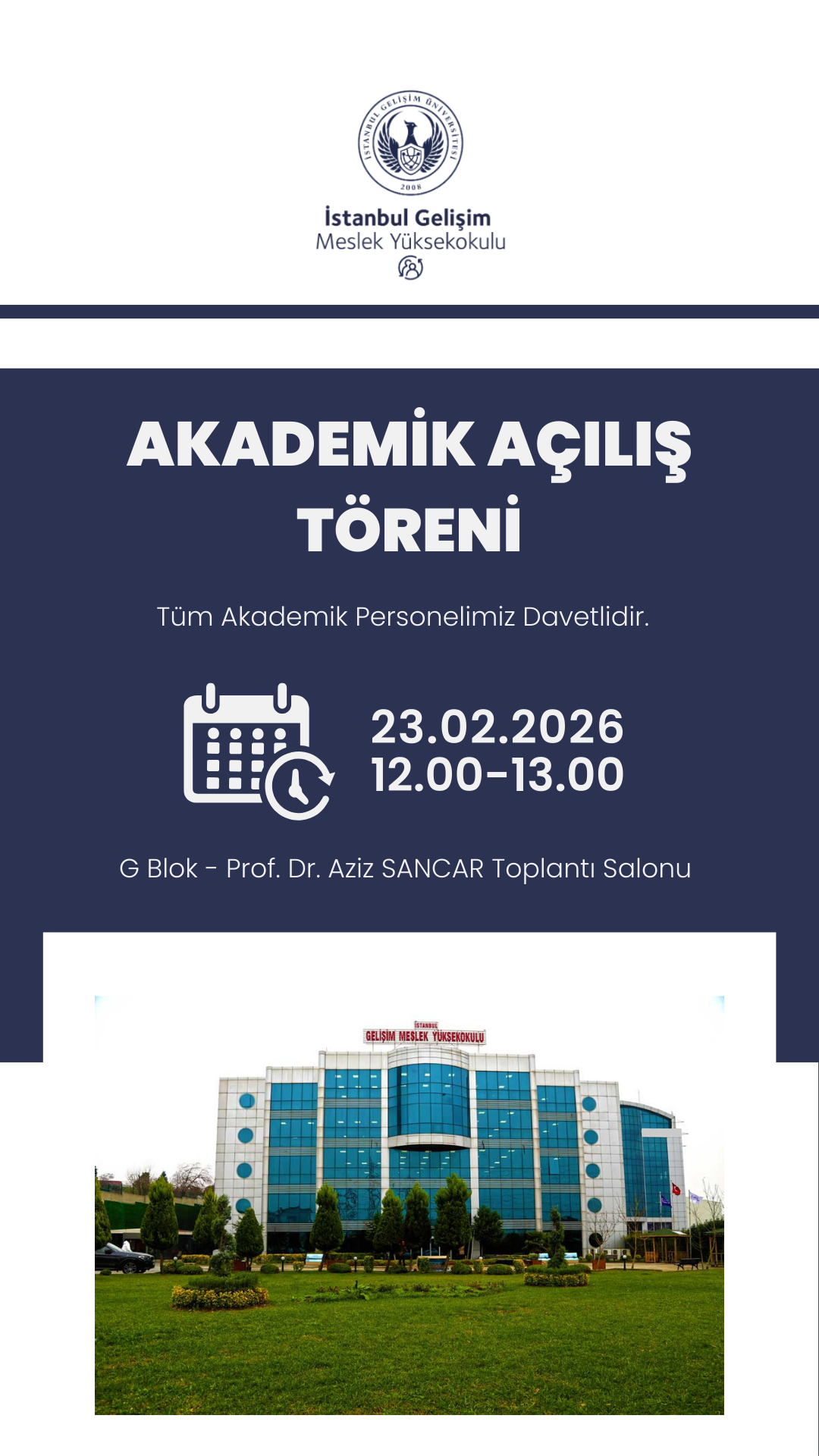 Akademik yılın başlangıcı vesilesiyle düzenlenecek olan törene tüm akademik personelimiz davetlidir.